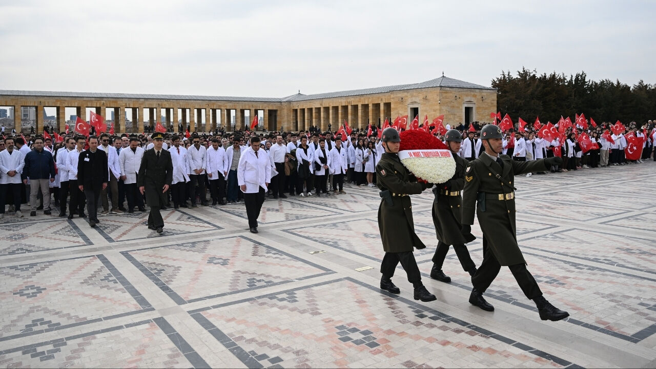 14 Mart Tıbbiyeliler Derneği üyeleri, Tıp Bayramı kapsamında Ankara’daki Anıtkabir’i ziyaret ederek anlamlı bir programa imza attı. Tören için bir araya gelen dernek üyeleri, Anıtkabir’in simgesel bölümlerinden biri olan Aslanlı Yol’dan yürüyerek Atatürk’ün mozolesine ulaştı.