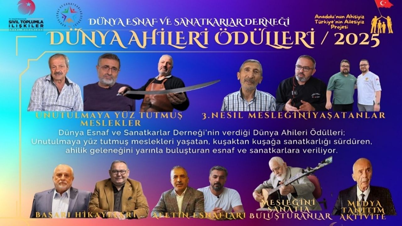 Dünya Esnaf ve Sanatkârlar Derneği- Ahi Enstitüsü tarafından gelenekselleştirilen Dünya Ahileri Ödülleri, 2025 yılı kazananlarıyla açıklandı.