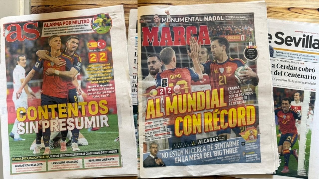 A Milli Futbol Takımı, Dünya Kupası Elemeleri’nin son haftasında İspanya ile deplasmanda 2-2 berabere kalarak yalnızca play-off biletini garanti etmekle kalmadı, aynı zamanda İspanya basınının gündemine oturdu. Grubun favorisi olan İspanya’nın ilk puan kaybını Türkiye karşısında yaşaması, ülkenin önde gelen gazetelerinde geniş yer buldu. Özellikle İspanya’nın 550 dakika sonra kalesinde gol görmesi dikkat çekti.