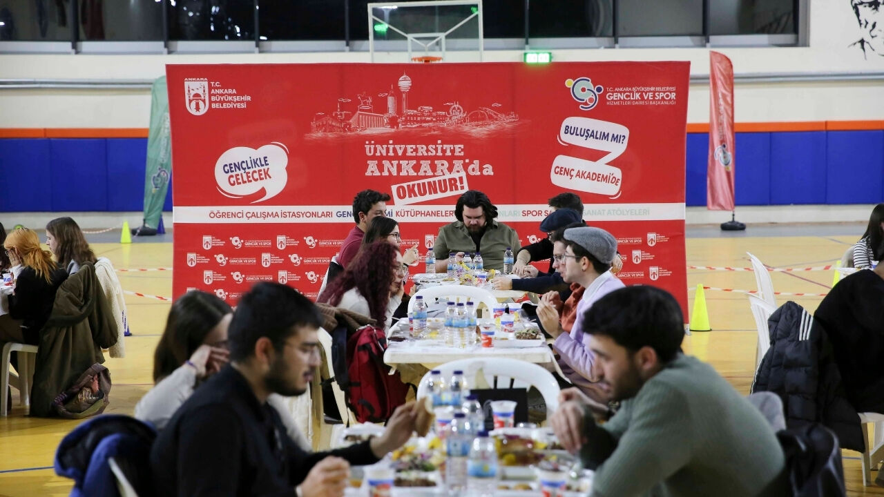 Ankara Büyükşehir Belediyesi, Ramazan ayının birlik ve beraberlik ruhunu pekiştirmek amacıyla kapılarını gençlere açtı. Gençlik ve Spor Hizmetleri Daire Başkanlığı bünyesinde faaliyet gösteren Genç Akademi ve çalışma istasyonu üyeleri, Ali Öcal Spor Salonu’nda gerçekleştirilen özel bir programda buluştu. Yaklaşık 100 gencin katılımıyla düzenlenen organizasyon, 90’lı yılların o meşhur paylaşımcı ve samimi atmosferini günümüze taşıdı. İftar vaktiyle başlayan programda gençler aynı sofrada buluşarak bereketli bir akşam geçirdi.