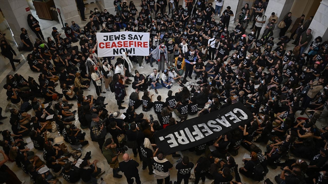 "Barış için Yahudi Sesi" adlı organizasyonun sosyal medya platformunda paylaşılan görüntülerde, göstericilerin Kongre içinde alkışlarla "Şimdi ateşkes" sloganları attığı duyuldu. Paylaşımda, "Yüzlerce Amerikalı Yahudi Kongre'de oturma eylemi düzenliyor ve Gazze'de ateşkes çağrısı yapana kadar Kongre'den ayrılmayacak. Binlerce ABD Yahudisi dışarıda protesto ederken, aralarında iki düzine hahamın da bulunduğu 350'den fazla kişi içeride dua ederek direniş gösteriyor." ifadelerine yer verildi.
