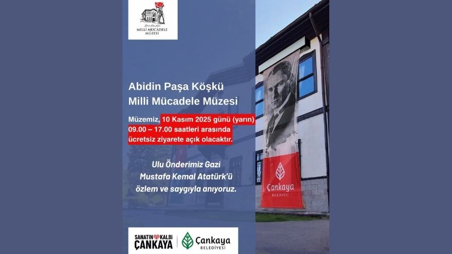 Çankaya Kültür Sanat Merkezi tarafından yapılan açıklamada, müzenin 10 Kasım günü 09.00 – 17.00 saatleri arasında ücretsiz ziyaret edilebileceği belirtildi. Vatandaşlar, Atatürk’ü anmak ve Millî Mücadele döneminin ruhunu yerinde deneyimlemek için müzeyi ziyaret edebilecek.
