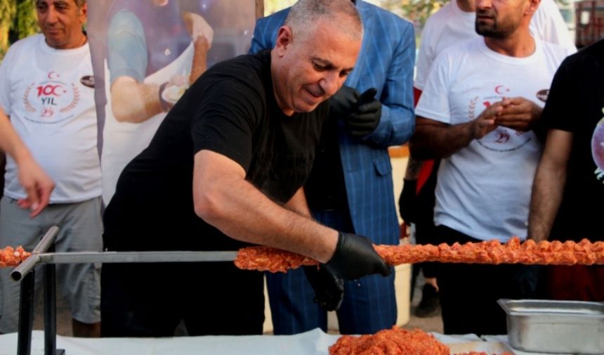 “Cumhuriyetimizin 100’üncü yılına özel 100 metre boru kebabı yaptım. Daha önce de 60 metre yapmıştım. Bu bir dünya rekoru. 100 metre tek parçada bir et. Kuşbaşı gibi şişe takılmıyor bu. Bugün Cumhuriyetimizin 100’üncü yılı bu kebabı da misafirlerimize ikram ediyorum. 150 kilogram et, 120 kilogram kömür kullandık. Maliyet hiç önemli değil. İnşallah Türkiye’miz daha iyi yerlere gelecek. İnşallah bunu bizim çocuklarımız devam ettirecek. Cumhuriyetimizin ilelebet daim olsun. Torunlarımızın çocukları, torunları 200 metreleri yapsın. Adanalı yaparsa böyle yapar.”