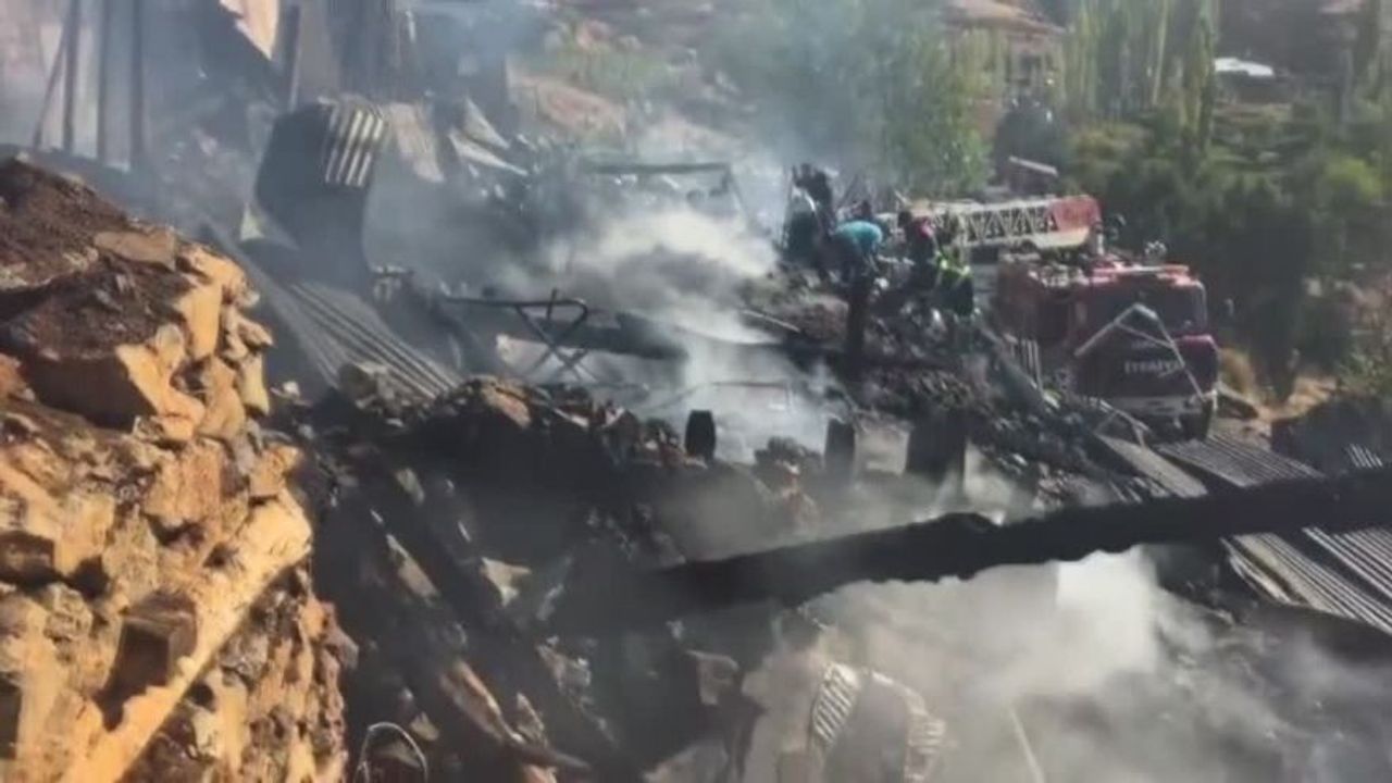 Çıkan yangın daha sonra bitişikteki başka bir eve daha sıçrarken yangının başladığı evde bir süre sonra çökme meydana geldi.