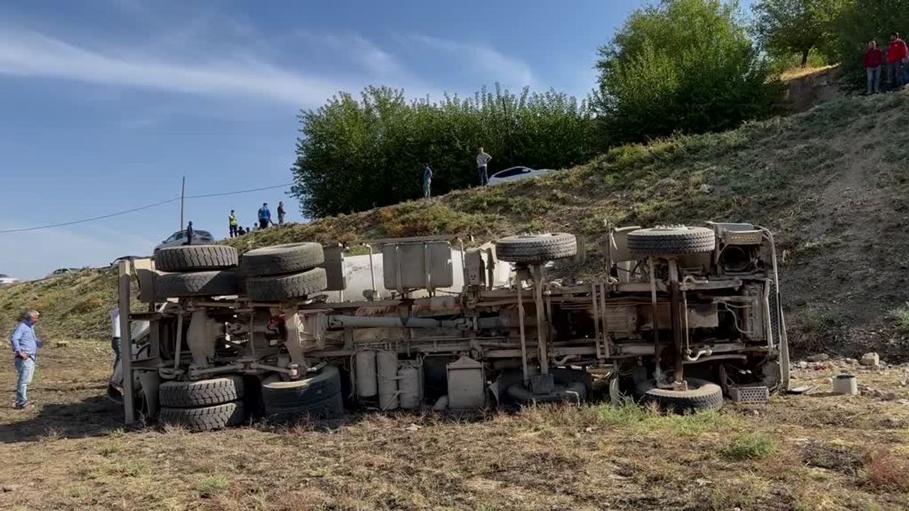 F.Y.'nın kullandığı 06 DLH 648 plakalı beton mikseri Mülk köyü girişinde şarampole devrildi.