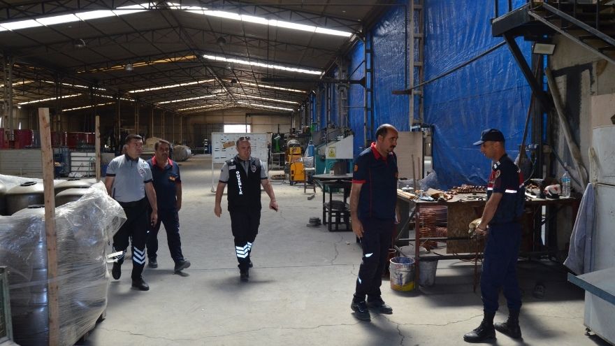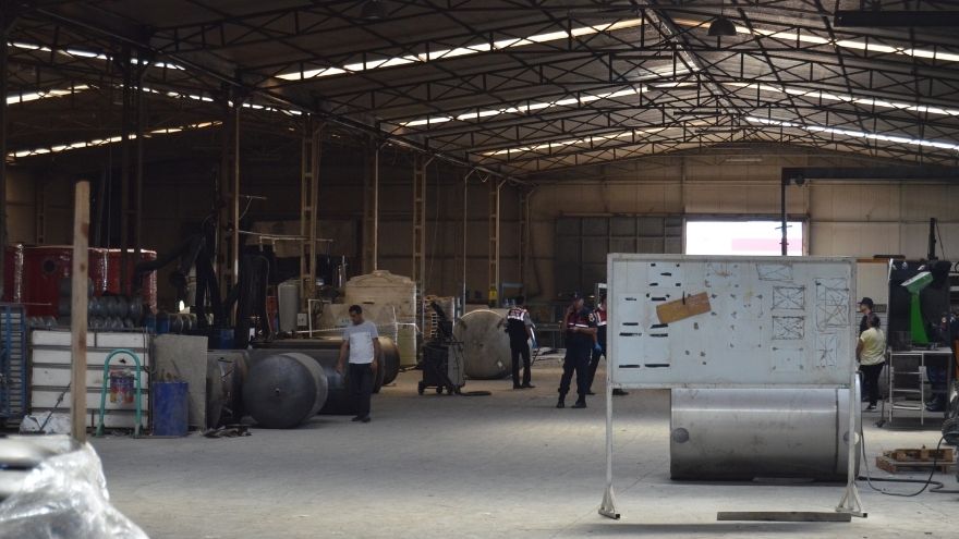Olay sabah Organize Sanayi Bölgesi'ndeki su depolama tankı üretimi yapan fabrikada saat 09.00 sularında meydana geldi.