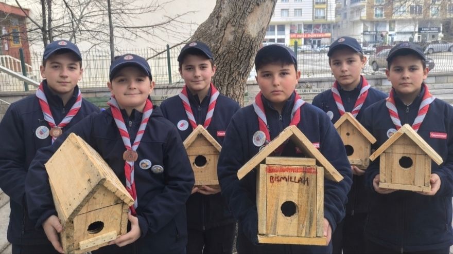 Gönüllü izciler, kendi imkanlarıyla kuş yuvaları ve yemlikler hazırladı. Bu hazırlık süreci, dondurucu soğukların kuşlar üzerindeki olumsuz etkisini azaltmayı hedefliyor.