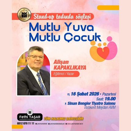 Yenimahalle Belediyesi, aile içi iletişimi güçlendirmek ve çocuk yetiştirme süreçlerine dair farkındalık yaratmak amacıyla özel bir eğitim programına ev sahipliği yapıyor. Bu kapsamda eğitimci ve yazar Sn. Alişan Kapaklıkaya kendine has samimi anlatımıyla ‘Mutlu Yuva Mutlu Çocuk’ konulu söyleşisinde Yenimahallelilerle bir araya gelecek.