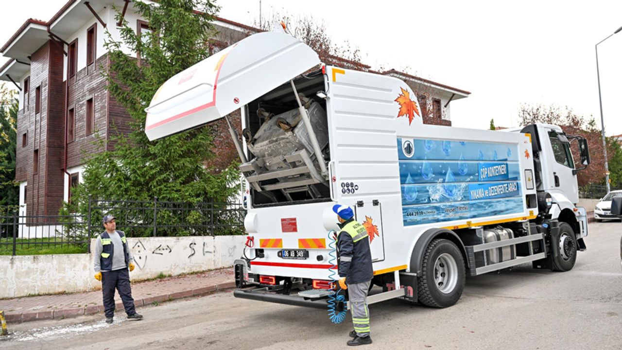 Araç, köpüklü ve basınçlı su sistemiyle her konteyneri tek tek yıkayarak hem kötü koku oluşumunun hem de bakteri birikiminin önüne geçiyor.