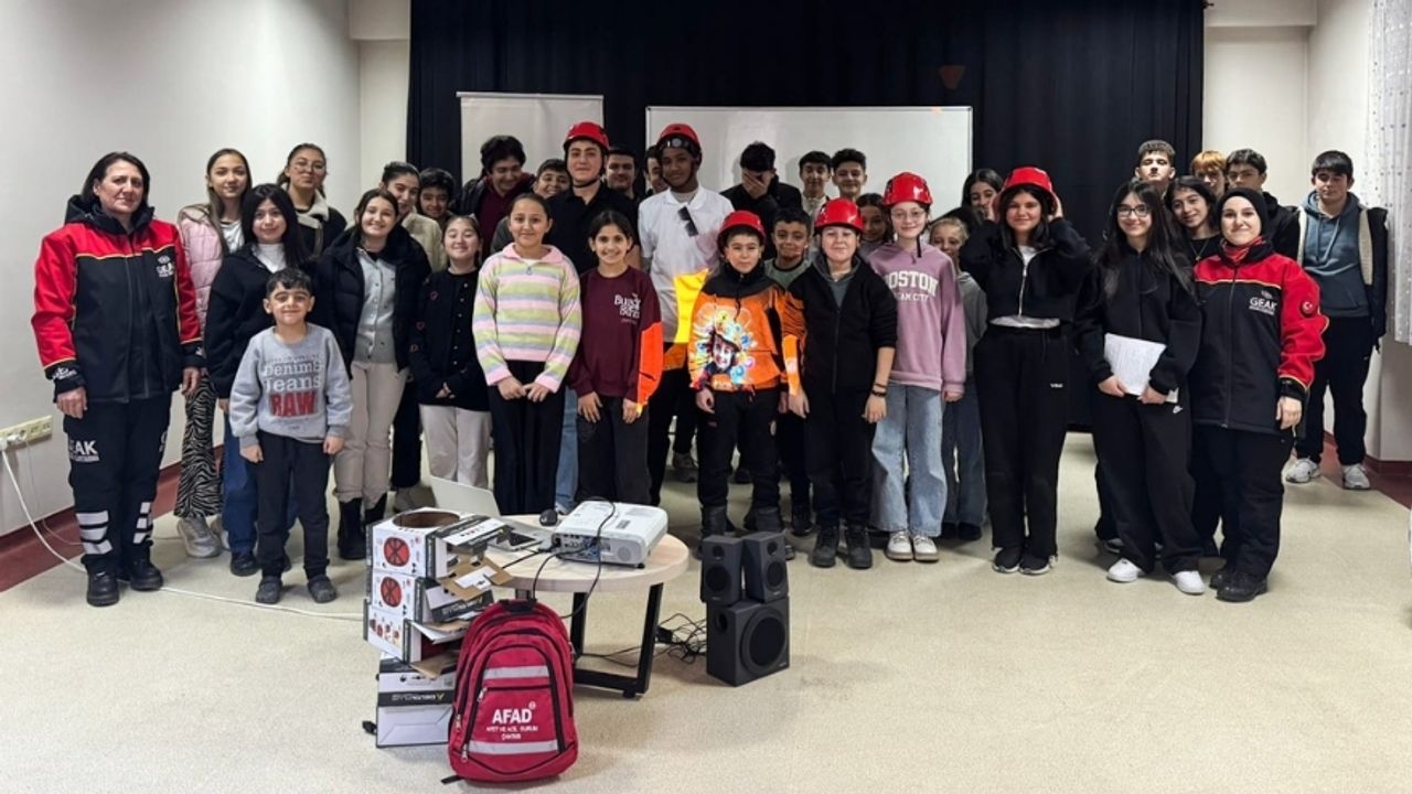 Ayrıca Türkiye'deki deprem levhaları, acil durum telefon numaraları ve sarsıntı anında yapılması gerekenler gibi kritik konular gençlere aktarıldı. Etkinlik sonunda katılımcılara baret hediye edilirken, gençler sunulan imkanlar için belediyeye ve Başkan Veysel Tiryaki'ye teşekkürlerini iletti.