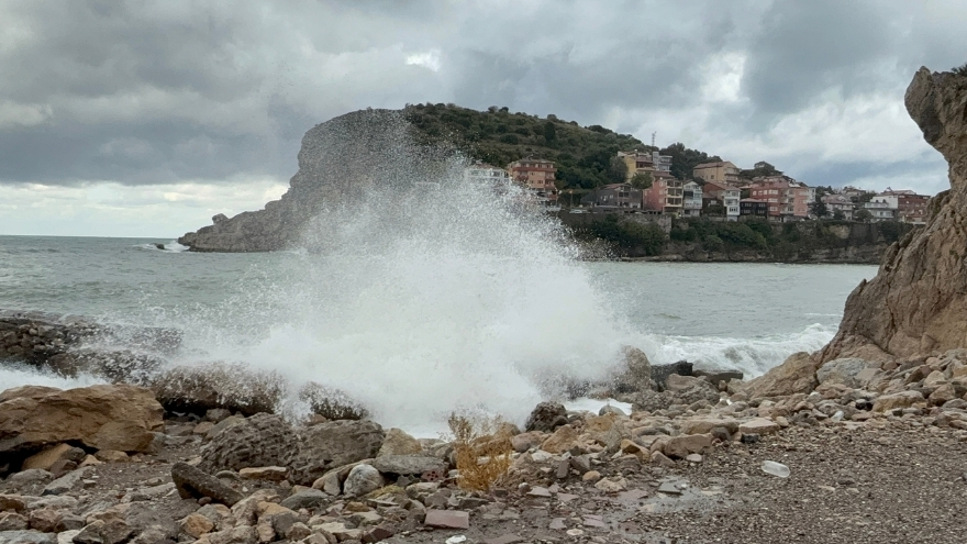 Amasra Küçük Liman’da denize çarpan dalgaların yüksekliği 4 metreye kadar çıktı. Oluşan dev dalgaları cep telefonlarıyla kaydeden vatandaşlar, doğanın bu etkileyici görüntülerine tanıklık etti. Rüzgâr ve dalgaların etkisiyle bazı kuru yük gemilerinin ilerlemesi güçleşti.