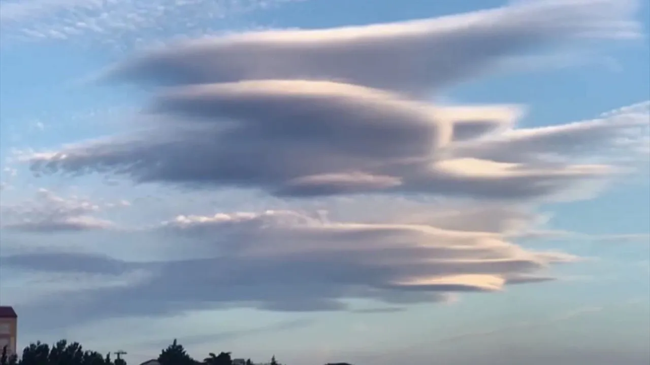 Gökyüzünde oluşan çok katmanlı mercek bulutu, bir süre sonra dağıldı.