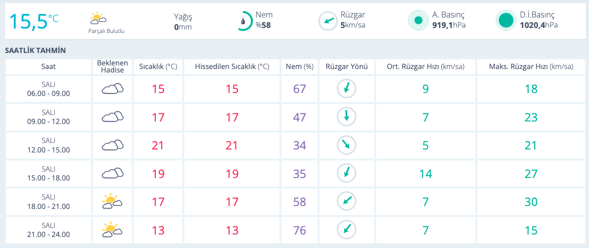 Meteoroloji tarafından paylaşılan 3 Ekim 2023 tarihli verilere göre, Ankara’da hava durumu şu şekilde olacak;