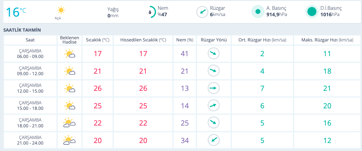 Meteoroloji tarafından paylaşılan 20 Eylül 2023 tarihli verilere göre, Ankara’da hava durumu şu şekilde olacak;
