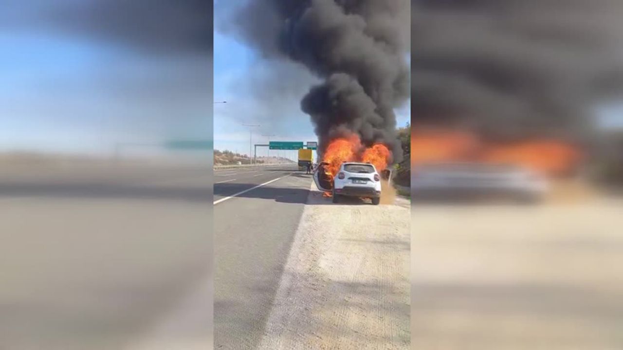 Ankara Çevre Otoyolu’nda seyir halindeki bir otomobil henüz bilinmeyen bir nedenle alev alarak yandı. Sürücü aracını emniyet şeridine çekti, çevredekiler müdahale etti ancak otomobil kullanılamaz hale geldi.