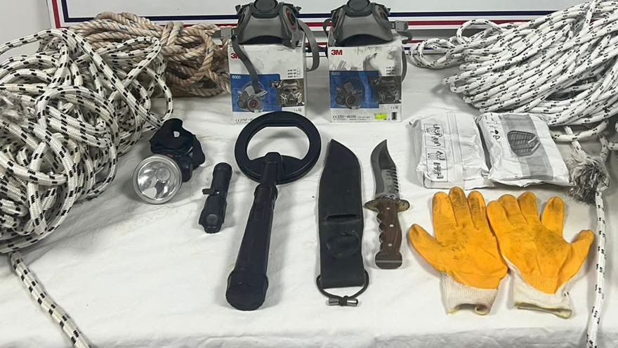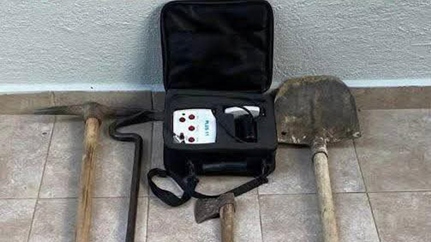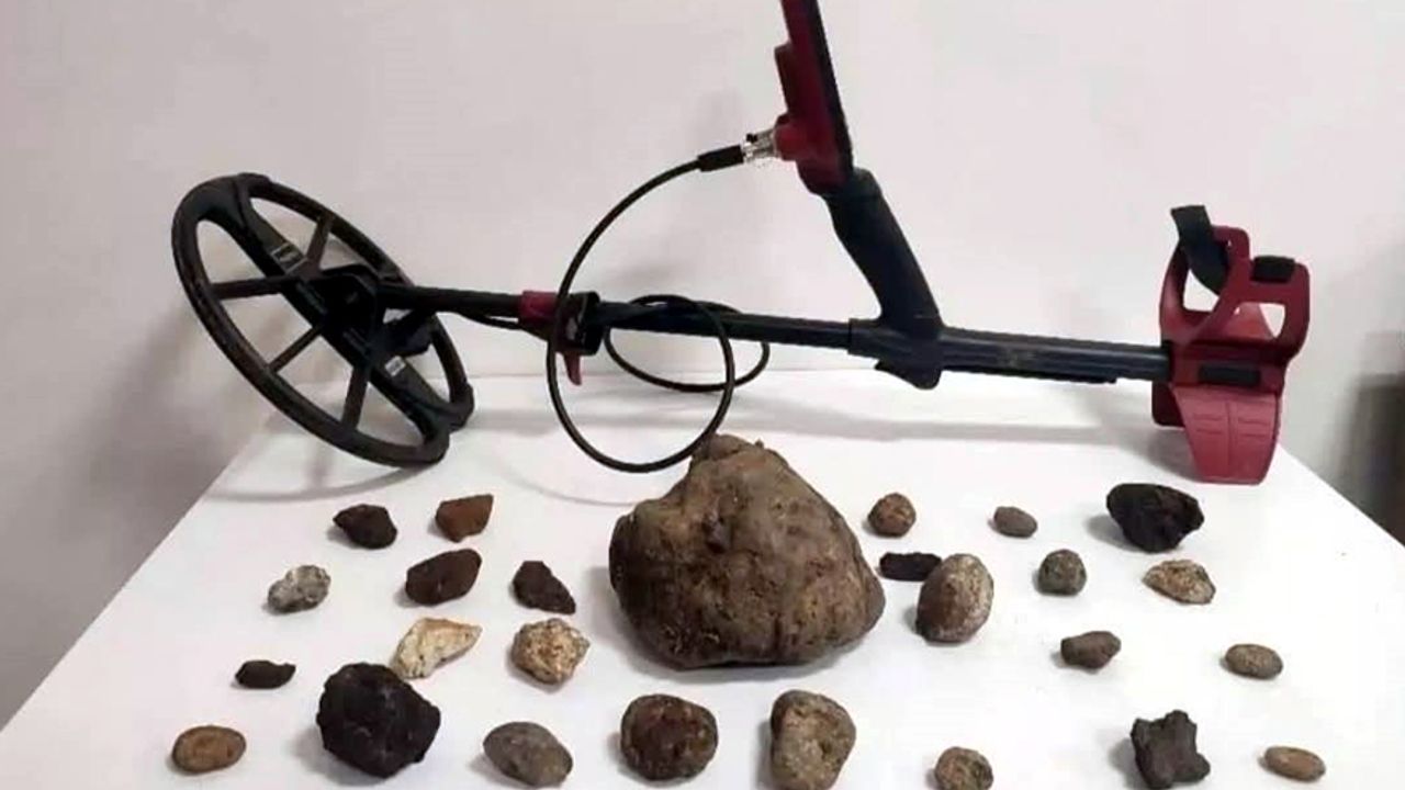 Kazı alanında yapılan aramalarda kürek, kazma, halat ve dedektörün yanı sıra bazı taşlar ele geçirildi.
