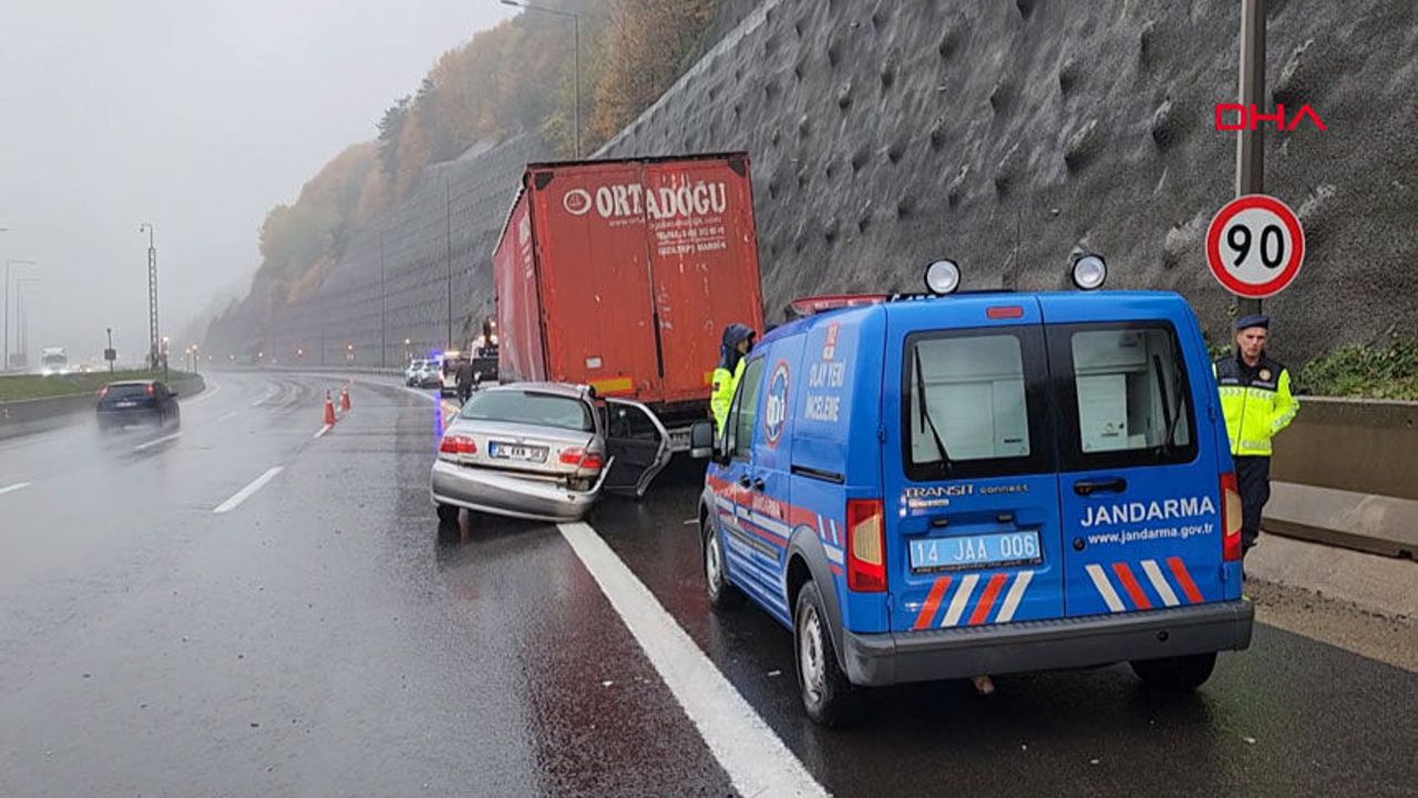 Ankara-İstanbul Otoyolu’nun Düzce geçişinde, Bolu Dağı çıkışında meydana gelen kazada, bir otomobil TIR’a çarparak altına girdi. Saat 08.30 sıralarında yaşanan kazada Mücahit Kaya’nın kullandığı 34 KKN 583 plakalı otomobil, Davut Aydın idaresindeki 76 AAN 162 plakalı TIR’a arkadan çarptı.