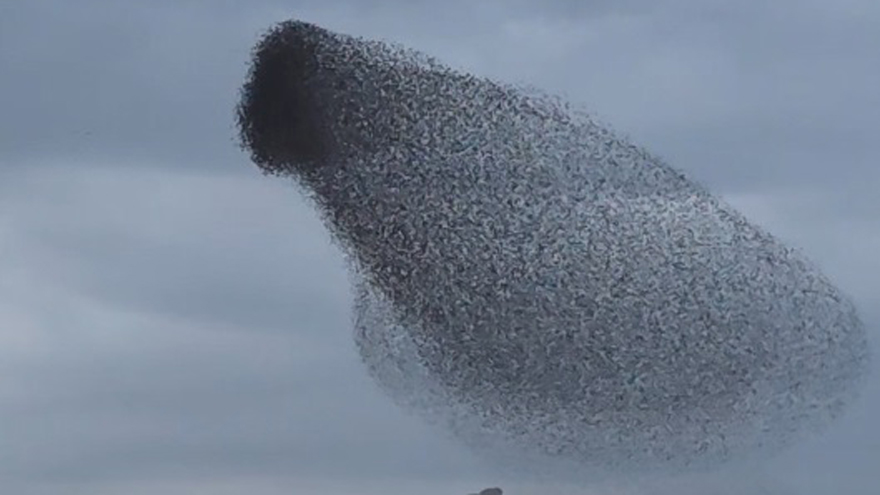 O anlara şahit olan vatandaşlar, sığırcık sürüsünün hareketlerini cep telefonu kameralarıyla kayda aldı.