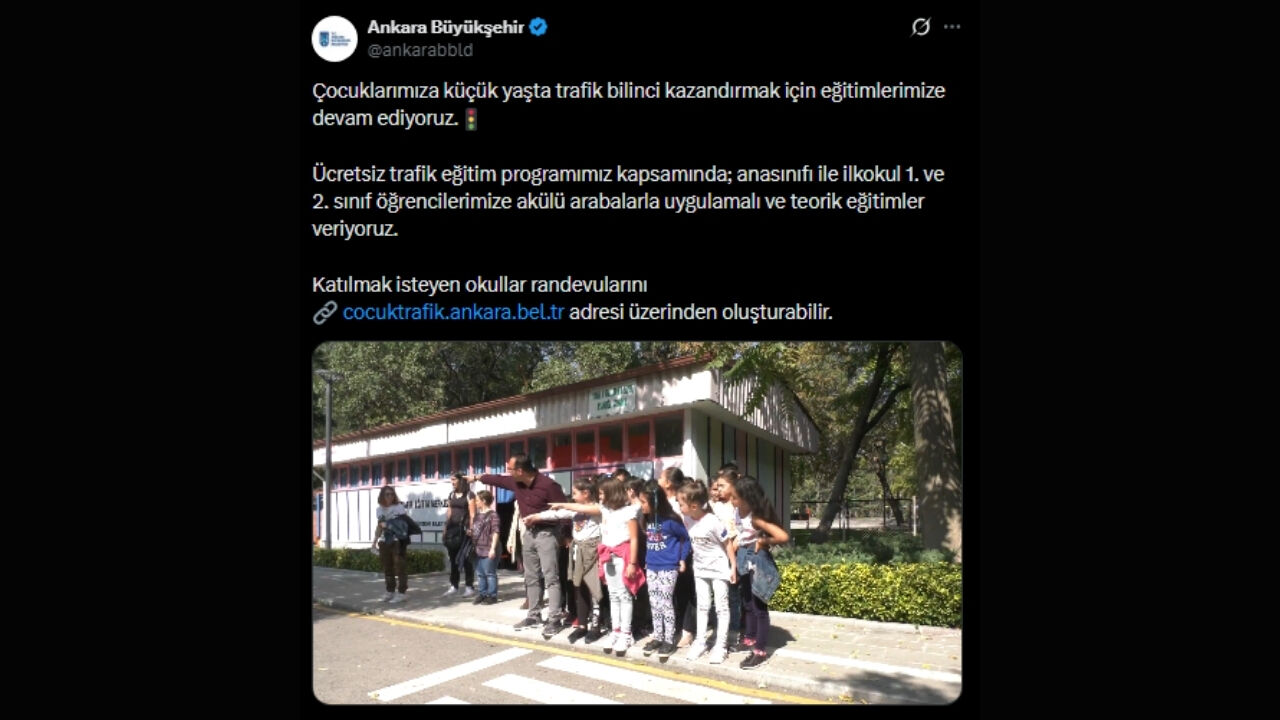 Ankara Büyükşehir Belediyesi tarafından çocukların erken yaşta trafik bilinci kazanmasını hedefleyen ücretsiz eğitimler devam ediyor. Anasınıfı ile ilkokul 1 ve 2. sınıf öğrencilerine yönelik hazırlanan programda, çocuklara hem teorik hem de uygulamalı trafik eğitimi veriliyor. Akülü araçlarla özel olarak hazırlanmış olan parkurlarda gerçekleştirilen eğitimler çocukların hem öğrenmesini hem de deneyim kazanmasını sağlıyor.