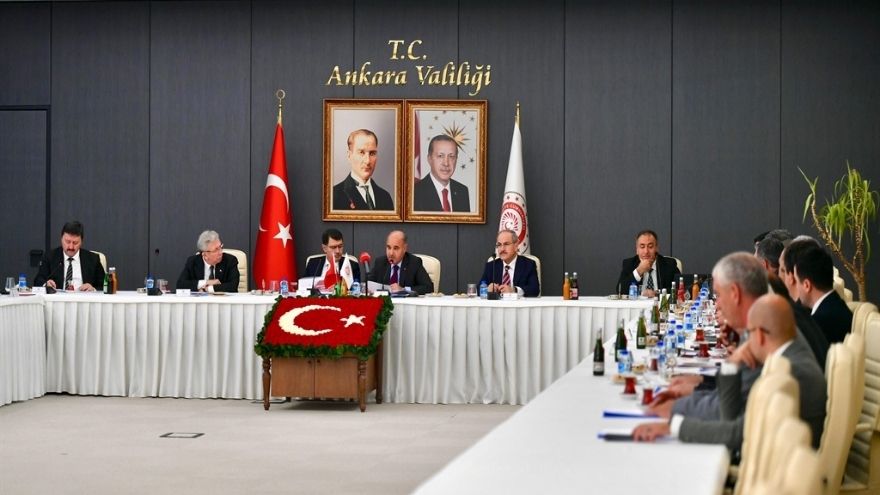 Ankara Valiliği'nde Vali Vasip Şahin'in ev sahipliğinde düzenlenen toplantıya İçişleri Bakan Yardımcısı Mehmet Aktaş, Ankara Büyükşehir Belediye Başkanı Mansur Yavaş, ilçe belediye başkanları, bölge ve il müdürleri ile ilgili kurum ve kuruluş temsilcileri katıldı.