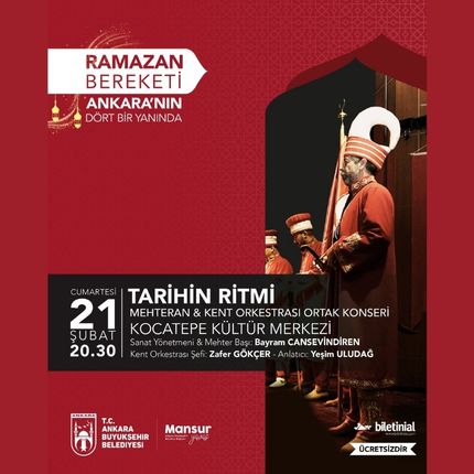 Ankara Büyükşehir Belediyesi, kültür ve sanat etkinlikleri kapsamında ‘Tarihin Ritmi’ adlı bir konser düzenliyor.