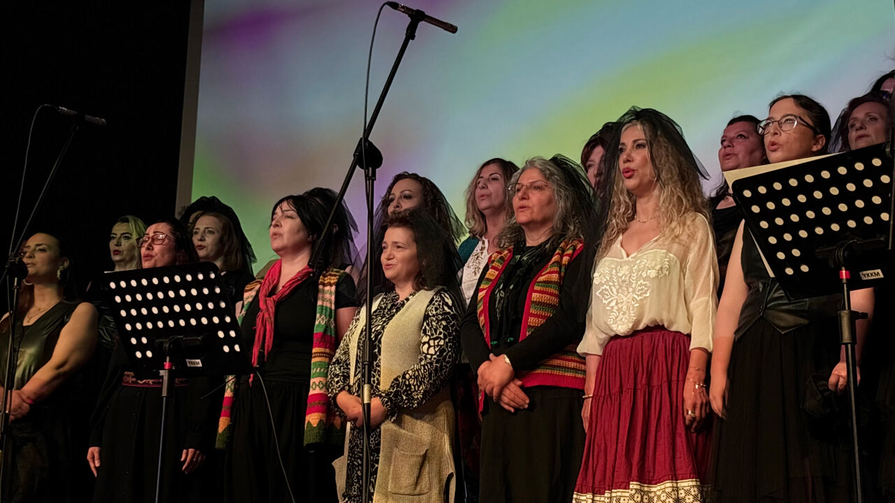 Akademisyenlerden ev kadınlarına kadar farklı meslek gruplarından kadınların oluşturduğu topluluk, sahnede önce türkünün ortaya çıkış hikayesini tiyatral olarak canlandırıyor, ardından koro eşliğinde türkülerin seslendirmesini yapıyor.