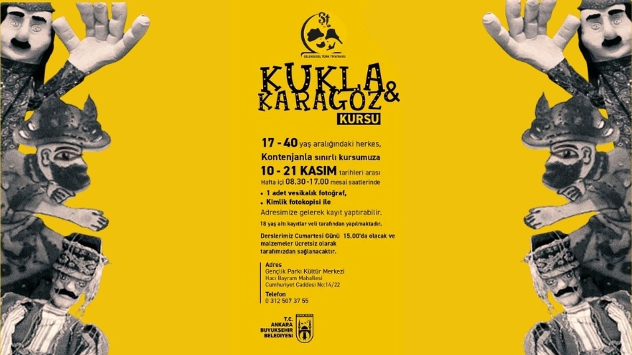 Ankara Büyükşehir Belediyesi, unutulmaya yüz tutmuş geleneksel Türk tiyatrosu sanatlarını genç kuşaklara tanıtmak amacıyla yeni bir kültür projesini hayata geçirdi. Kukla ve Karagöz Kursu için kayıtlar başladı. Gençlik Parkı Kültür Merkezi’nde düzenlenecek kursta, 17-40 yaş arası katılımcılar geleneksel gölge oyununun inceliklerini ücretsiz olarak öğrenebilecek.