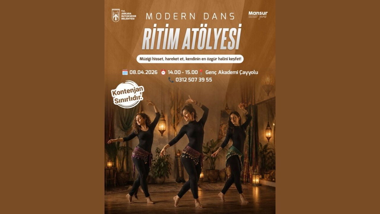 Ankara’da gençlere yönelik sanat etkinliklerine bir yenisi daha ekleniyor. Ankara Büyükşehir Belediyesi’nin sosyal medya üzerinden duyurduğu modern dans ve ritim atölyesi katılımcılara hem müziği hissetme hem de bedenlerini özgürce ifade etme fırsatı sunacak. Sınırlı kontenjanla gerçekleştirilecek olan etkinlik, dansa ilgi duyanlar için özel bir deneyim olarak öne çıkıyor.