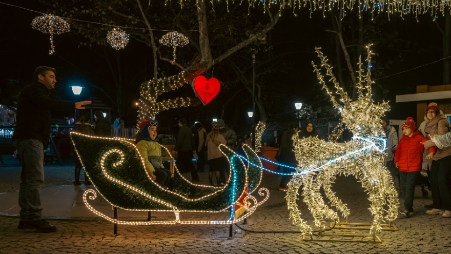 Kent sakinleri, süslenen alanlarda yürüyüş yaparak ve fotoğraf çektirerek yeni yıl atmosferinin tadını çıkardı.