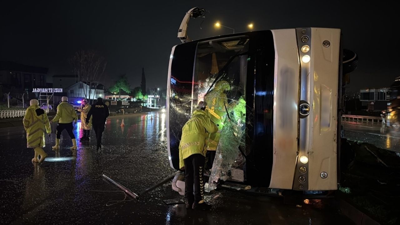 Ankara’dan Tiflis’e doğru seyir halindeki yolcu otobüsü, Samsun-Ankara kara yolu üzerinde kontrolden çıkarak devrildi. Gece saatlerinde meydana gelen kazada, ilk belirlemelere göre aralarında sürücülerin de bulunduğu yedi kişi yaralandı.