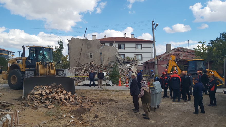 Çöken binanın enkaz kaldırma çalışmalarına da başlanıldı.