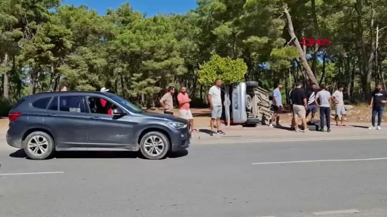 Meydana gelen kazada çarpmanın etkisiyle savrulan araç kaldırıma çarpıp devrilirken ticari araç sürücüsü F.K. ile araçta bulunan iki çocuğu yaralandı.