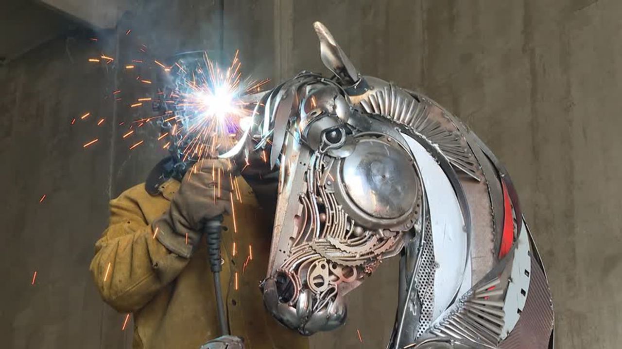 Teknolojik ve askeri üretim süreçlerinden arta kalan metal parçalar, dünya hurda sanatında öne çıkan 50 sanatçının çalışmalarıyla sanat eserlerine dönüştürülüyor.