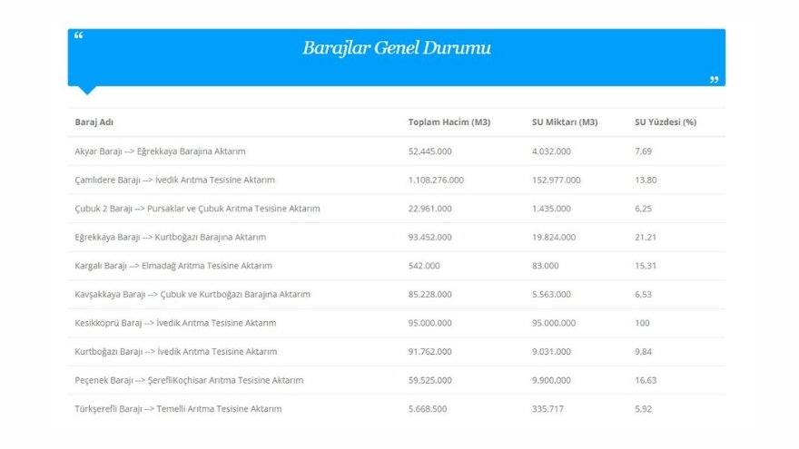 Barajlardaki doluluk oranları şöyle gerçekleşti: