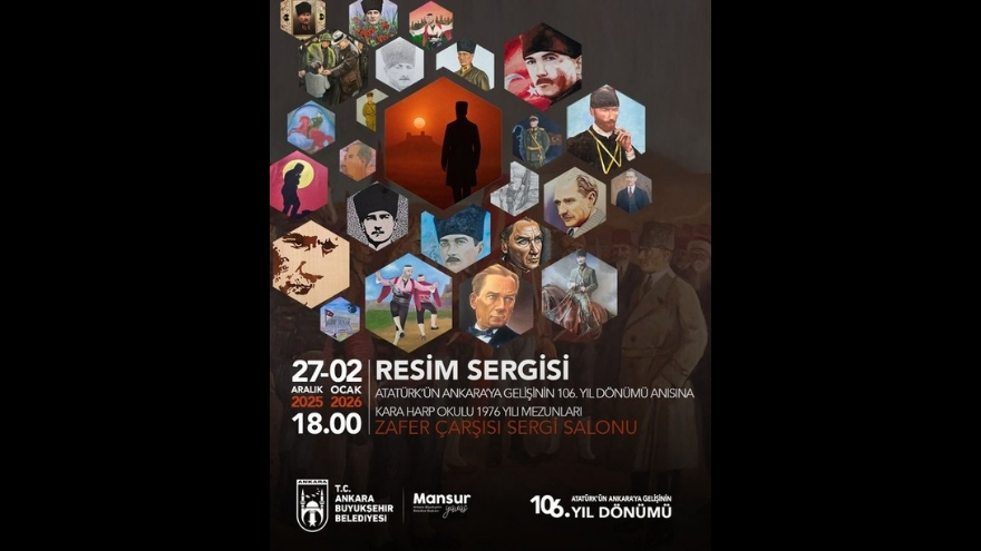 Ankara Büyükşehir Belediyesi, Gazi Mustafa Kemal Atatürk’ün Ankara’ya gelişinin 106. yıl dönümü dolayısıyla anlamlı bir sanat etkinliğine ev sahipliği yapıyor. Kara Harp Okulu 1976 yılı mezunları tarafından hazırlanan özel resim sergisi, Atatürk’ün Ankara’ya gelişini sanatın diliyle anarken, Zafer Çarşısı Sergi Salonu’nda sanatseverleri ağırlamaya hazırlanıyor.