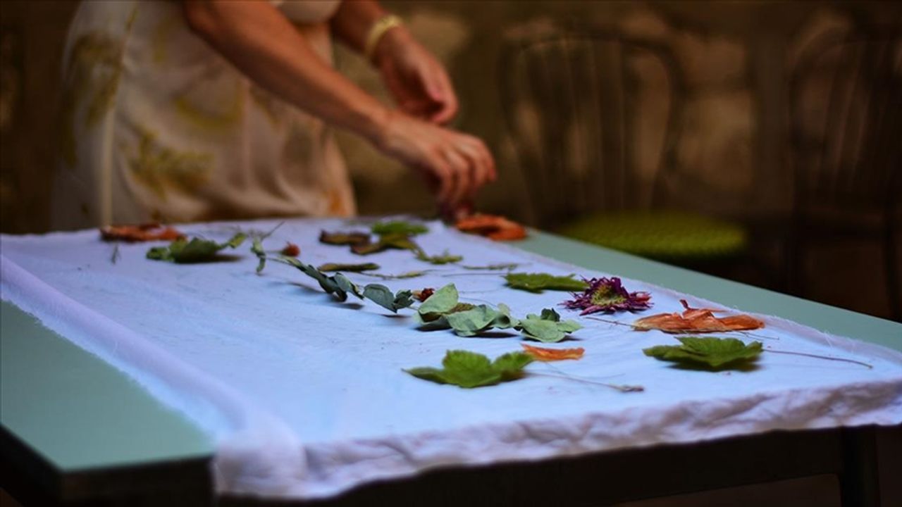 Ekolojik baskı yapımına ilişkin bilgi veren Sarımeşe, öncelikle kumaşı 3 saat doğal tuzlarla "mordanlama" işlemine tabi tuttuğunu aktardı.