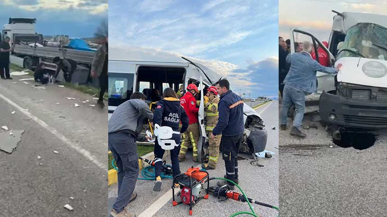 Kaza, saat 19.00 sıralarında Ayvalık - İzmir karayolunda meydana geldi. Enis K. (42) yönetimindeki fabrika işçilerinin taşındığı 10 AGE 782 plakalı servis minibüsü, Ayvalık istikametine dönmek isterken Abdullah A.'nın kullandığı 34 HPP 024 plakalı TIR ile çarpıştı. Kazada, minibüs sürücüsü Enis K. ile minibüste bulunan Derya Küçük (24), Şafak Akbulut (27), Yasemin Açıkalınlı (32), Semanur Aktan (33), Sezai Aydoğan (37), Gülay Mehder (40), Selcen Arıkan (40) ve Nilüfer Rüzgar (49), yaralandı. İhbar üzerine kaza yerine jandarma, itfaiye ve sağlık ekipleri sevk edildi. İtfaiye ekiplerince minibüsten çıkarılan yaralılar, sağlık ekiplerinin kaza yerindeki ilk müdahalesinin ardından Ayvalık, Burhaniye ve Edremit Devlet hastanelerine kaldırıldı. Yaralılardan minibüs sürücüsü Enis K. ile Derya Küçük ve Şafak Akbulut'un hayati tehlikesinin bulunduğu öğrenildi.