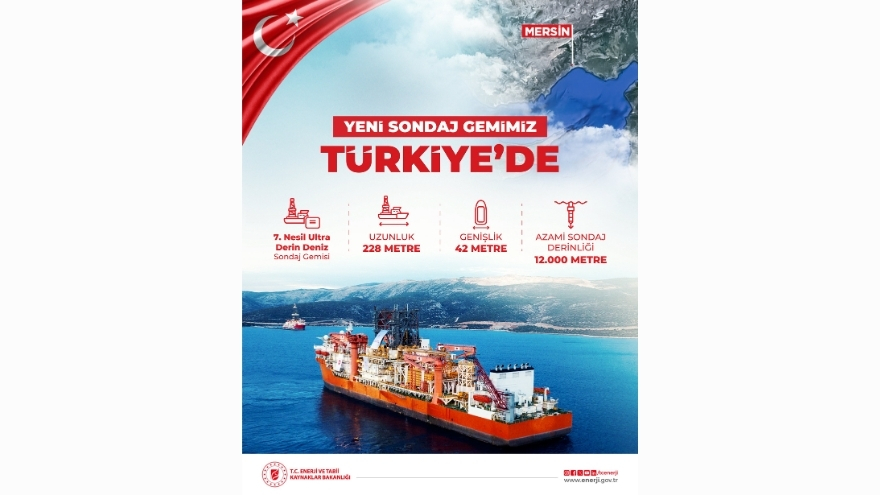 Türkiye’nin enerji filosuna katılan 6’ncı sondaj gemisi Mersin’e demirledi. 228 metre uzunluğa, 42 metre genişliğe sahip olan 7’nci nesil ultra derin deniz sondaj gemisi, 12 bin metreye kadar sondaj yapabilen yüksek teknolojisiyle dikkat çekiyor.