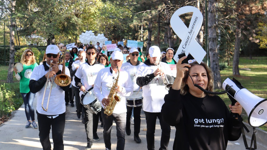 Etkinlik sonunda gökyüzüne bırakılan beyaz balonlar, akciğer kanseriyle mücadelede dayanışmanın sembolü olarak dikkat çekti.