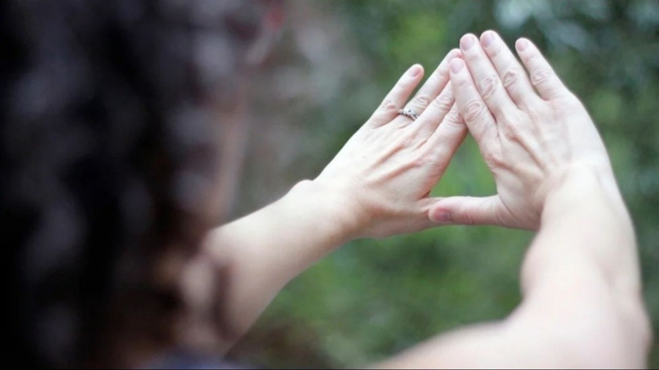İki elinizi üçgen oluşturacak şekilde birleştirip küçük bir delik açın.