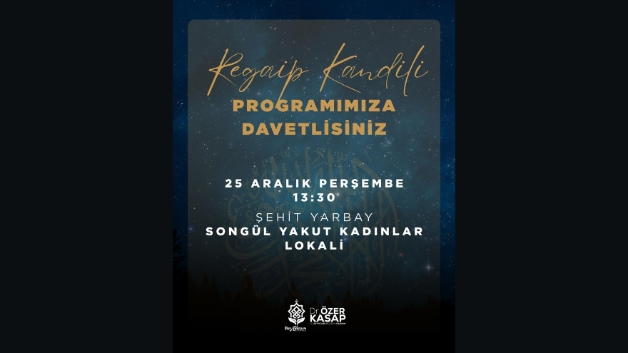 Regaip Kandili programı, 25 Aralık Perşembe günü saat 13:30’da, ilçedeki önemli sosyal mekanlardan biri olan Şehit Yarbay Songül Yakut Kadınlar Lokali'nde düzenlenecek.