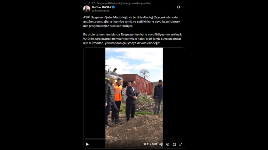 Beypazarı Belediyesi, ilçe sakinlerini temiz ve sağlıklı suyla buluşturmak için yoğun mesai harcıyor. T.C. Beypazarı Belediye Başkanı Özer Kasap ve ASKİ Beypazarı Şube Müdürlüğü iş birliğiyle başlatılan sondaj çalışmaları, ilçenin içme suyu ihtiyacının yaklaşık yüzde 40’ını karşılamayı hedefliyor. Başkan Kasap, sahadaki çalışanlara moral vererek projeye destek oluyor.