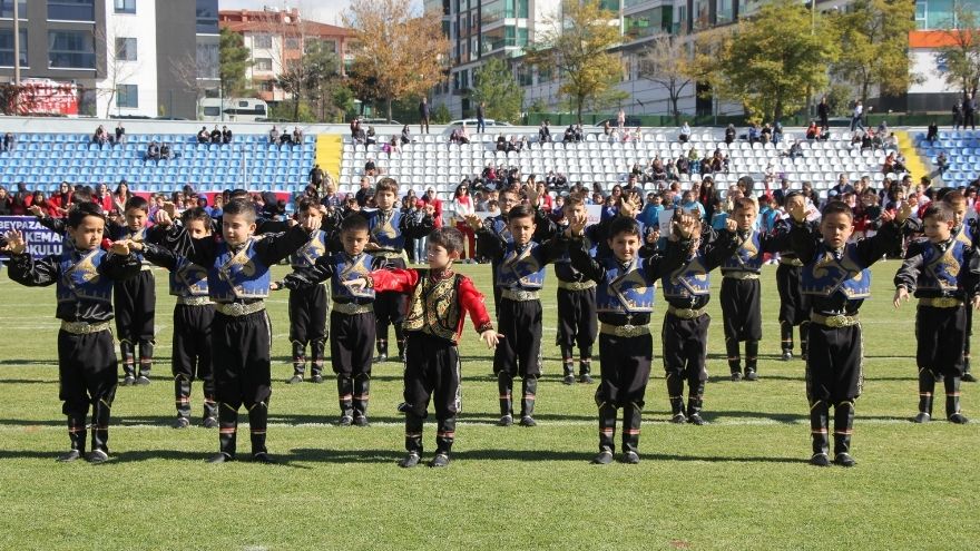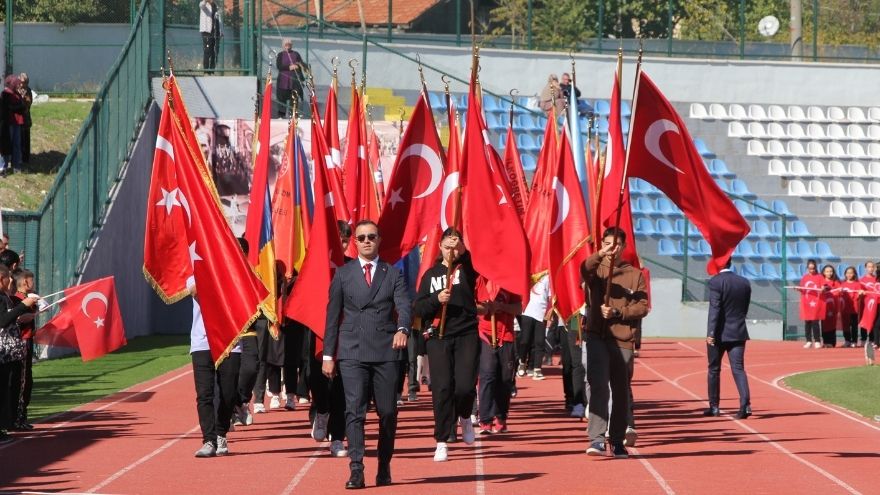 Şehir stadında düzenlenen programda saygı duruşunda bulunulmasının ardından İstiklal Marşı okundu.