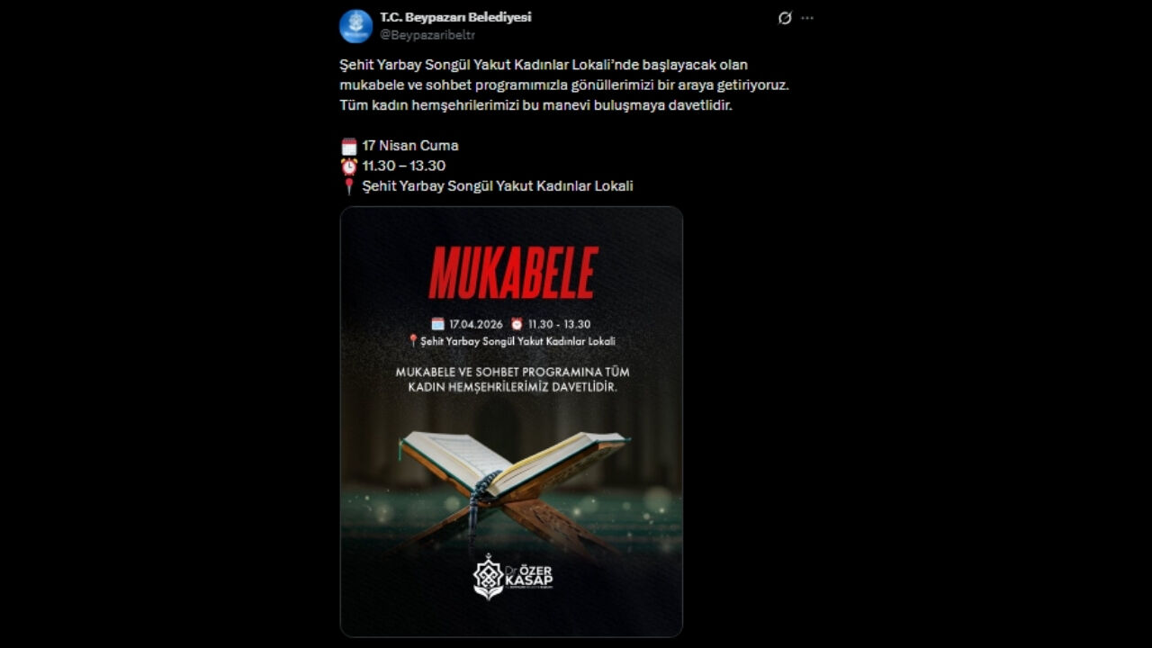 Beypazarı Belediyesi’nin paylaşımında, “Şehit Yarbay Songül Yakut Kadınlar Lokali’nde başlayacak olan mukabele ve sohbet programımızla gönüllerimizi bir araya getiriyoruz. Tüm kadın hemşehrilerimizi bu manevi buluşmaya davetlidir” ifadelerine yer verildi.