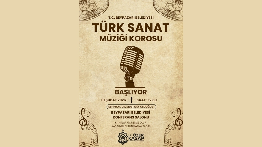 Beypazarı Belediyesi Türk Sanat Müziği Korosu, deneyimli isimlerden Prof. Dr. Mustafa Aydoğdu’nun şefliğinde sanatseverlerle buluşacak.