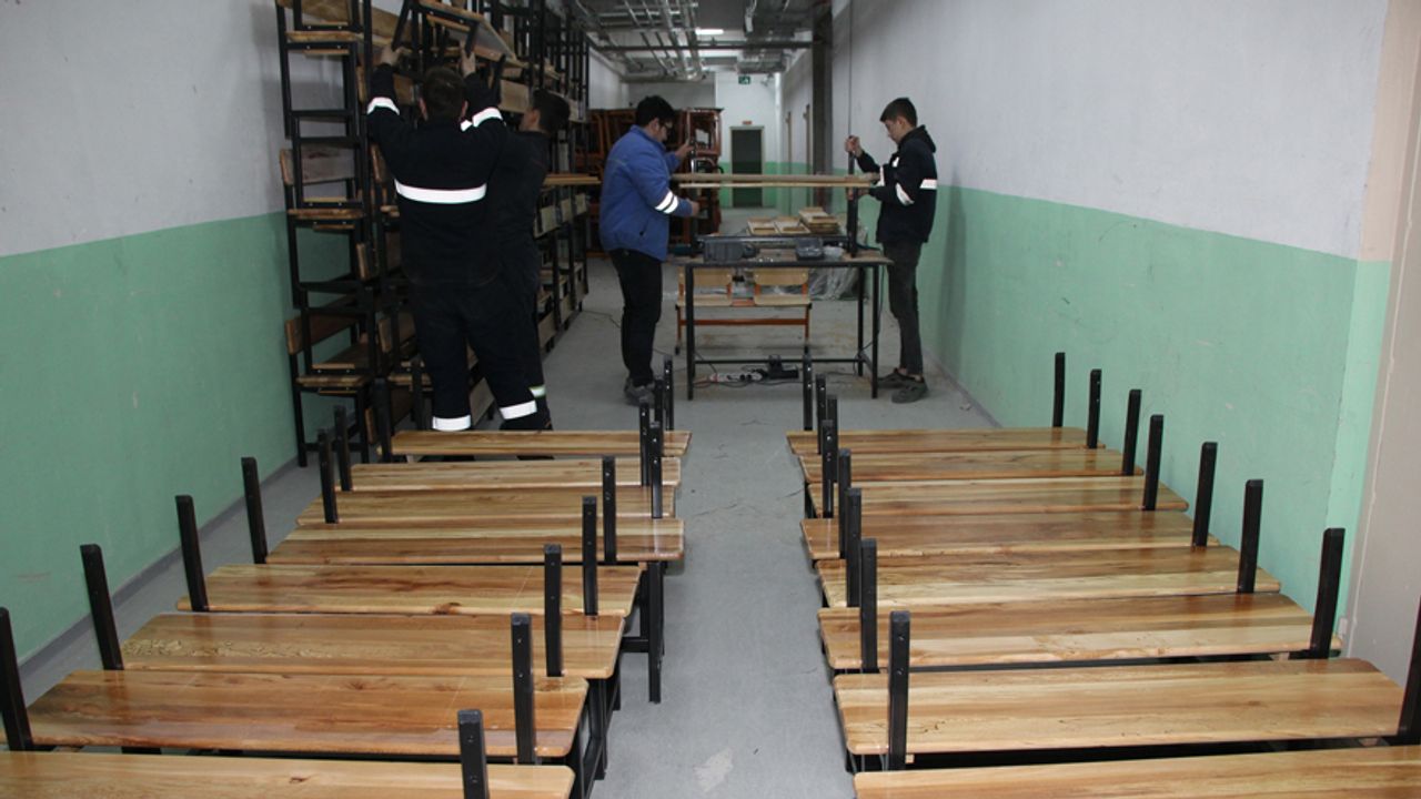 Okul sırası, öğretmen dolabı ve çeşitli mobilya türleri öğrencilerin katkısıyla imal ediliyor.