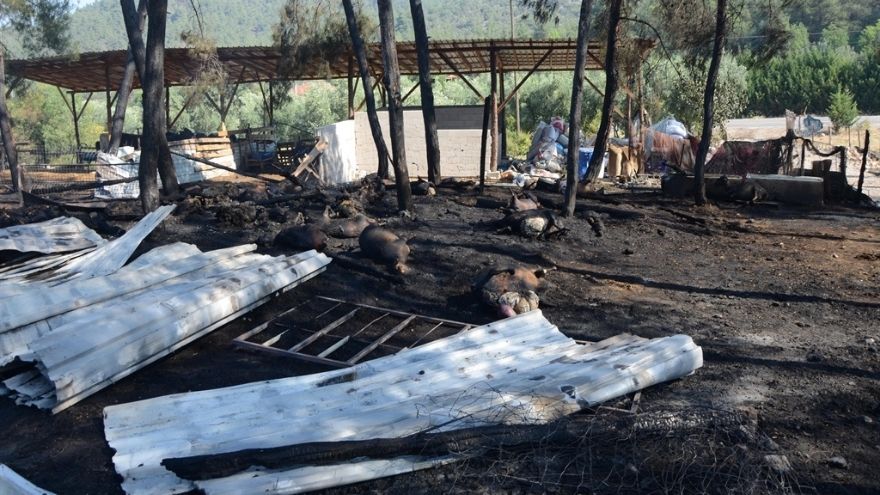 Alevler ormanlık alana da sıçrarken, çiftlik sahibi Selçuk Şahin’e ait 95 küçükbaş hayvan yanarak telef oldu. Hayvanların çoğunun gebe olduğu öğrenilirken, olayla ilgili kundaklama şüphesiyle soruşturma başlatıldı.