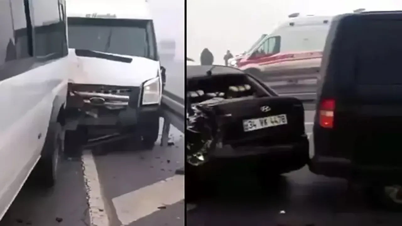 Yolu kapatan tır ile aynı yöne giden 34 UD 8386, 13 DD 990, 34 VK 4478, 13 J 5032 ve 13 J 5085 plakalı araçlar da zincirleme olarak birbirine çarptı.