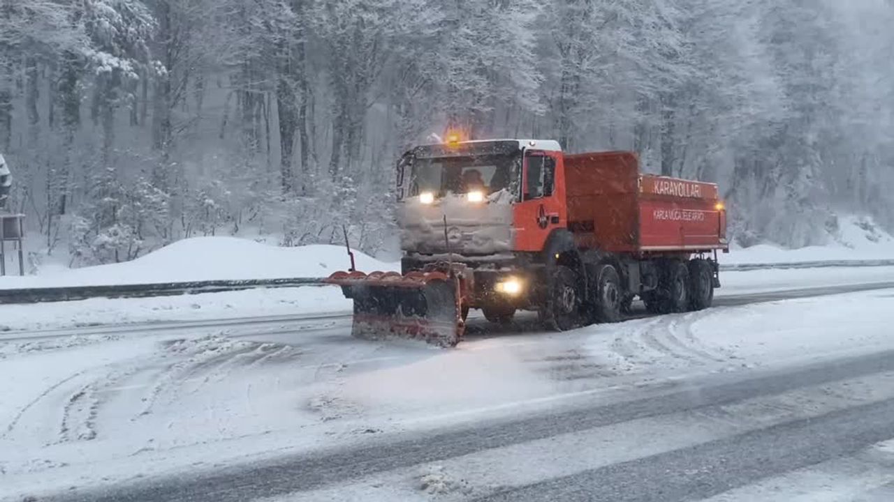 Ankara ile İstanbul'u birbirine bağlayan önemli geçiş noktalarından D-100 kara yolunun Bolu Dağı kesiminde kar yağışı yoğun şekilde devam ediyor.