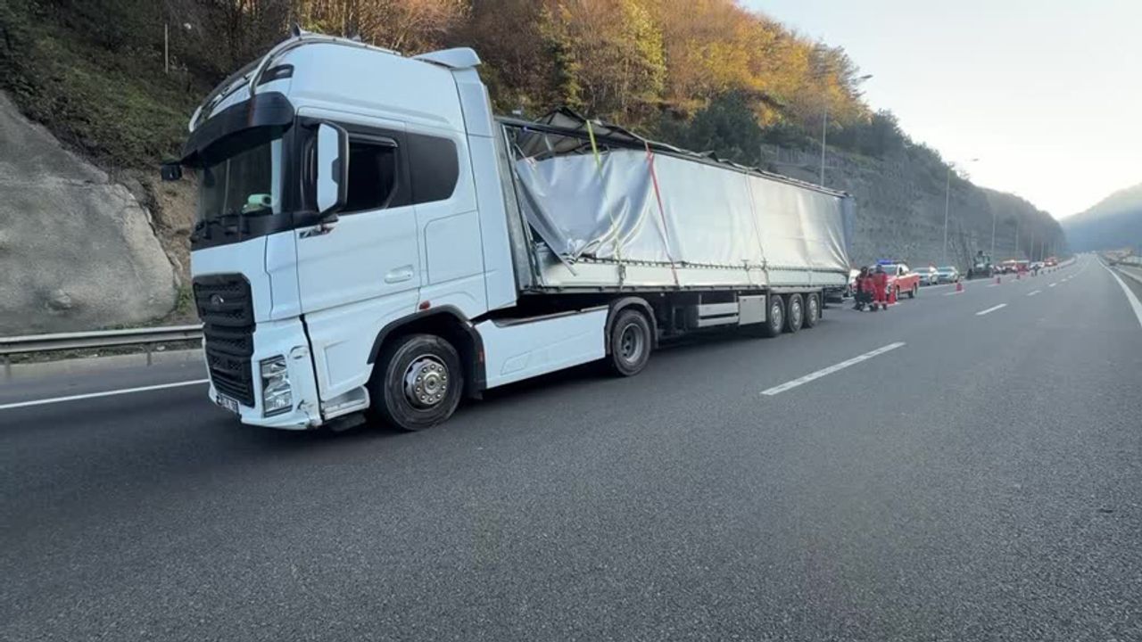 Otoyolda İstanbul istikametine ilerleyen S.Ö. yönetimindeki Mersin plakalı tır, 2. viyadük üzerinde sürücünün direksiyon hakimiyetini kaybetmesi sonucu bariyere çarparak yola savruldu.